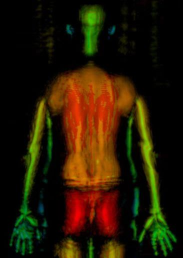 毫米波人体成像技术可通过在目标空间安置设备并通过采集设备的自转收集的毫米波信息实现。由设备高速旋转中收集的数据,通过数据处理生成的人体“透视”图。
